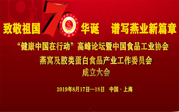 中国食品工业协会在上海举办“健康中国行动”国际高峰论坛暨中国食品工业协会燕窝及胶类蛋白食品产业工作委员会成立大会。