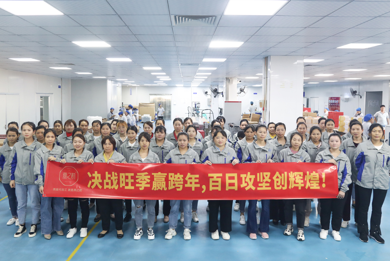 旺季是定基础、抢市场、夺全胜的决战时期,是促发展、保大局、定全年的关键时期。为了今年能够乘胜而进,继续保持领先地位。燕之初全体员工精神振奋、严阵以待,开启了以“决战旺季赢跨年 百日攻坚创辉煌”为主题的旺季生产大会战模式。各岗位员工齐发力全面推进旺季营销各项工作,誓夺旺季工作的全面胜利。